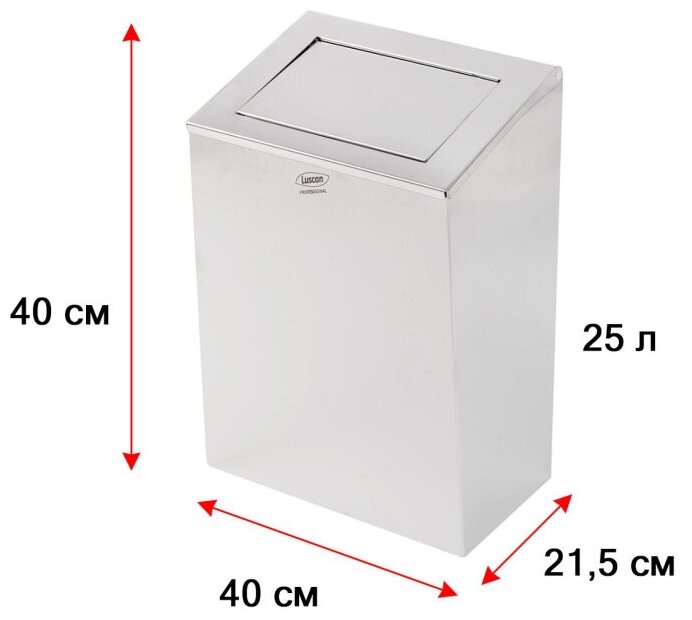 Корзина для мусора с крышкой Luscan Professional 25 л выполнена из полированной нержавеющей стали Satine Surface Push-System Cover , что позволяет ее использовать как внутри помещения, так и за его пределами.