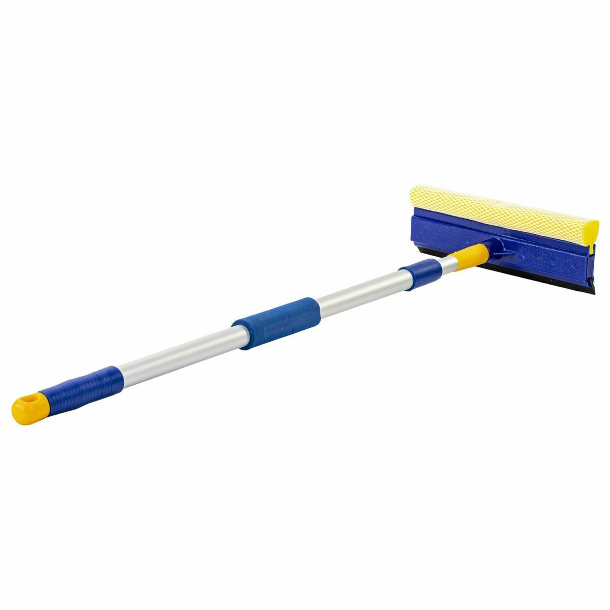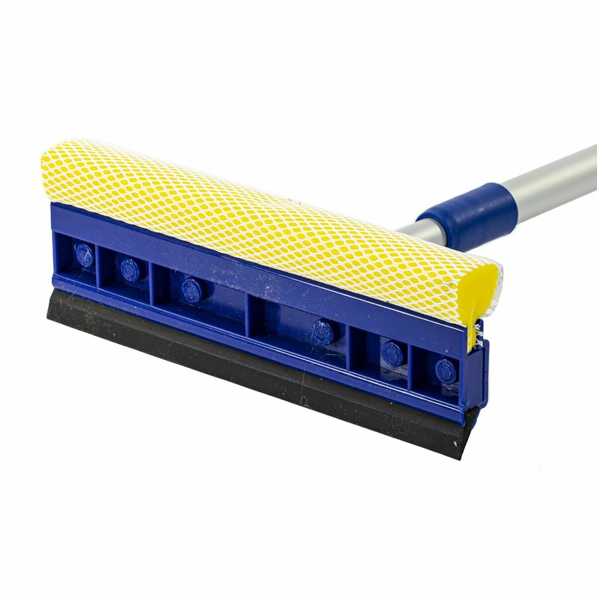Выполняет две функции: мытье стеклянной поверхности с помощью спонжа и сгон воды резиновым лезвием. Телескопическая ручка с вращающейся рабочей частью упрощает уборку. Ручка выполнена из алюминия. Длина телескопической ручки - 76-125 см. Ширина рабочей части - 25 см.