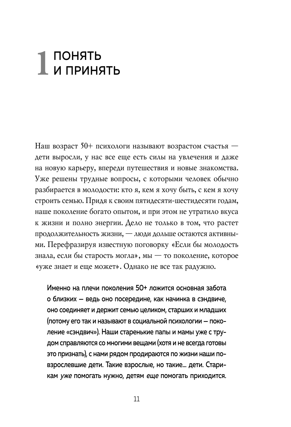 Мне 63, и эта книга для меня тоже. Я много читаю литературы по психологии, межпоколенческих взаимоотношениях. Здесь мне лично очень понравилась, помимо всех прочих, глава о типах привязанностей, причиной их возникновения и влиянии, в дальнейшем, которое они оказывают на семейные взаимоотношения. Рекомендую, во всяком случае я поставила эту книгу рядом с теми, которые "всегда под рукой". Что касается качества издания книги, то тут тоже все на уровне, ее приятно держать в руках, бумага плотная, белая, забавные иллюстрации.