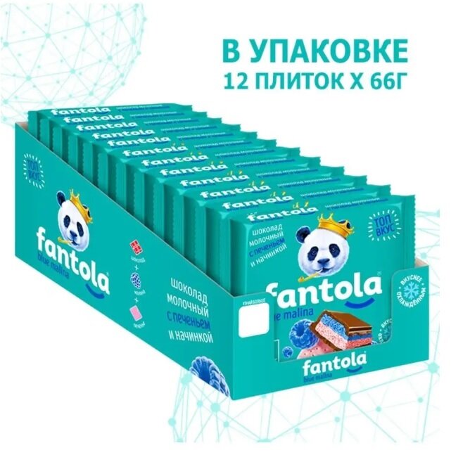 Шоколад Fantola молочный Blue malina и печеньем 60г