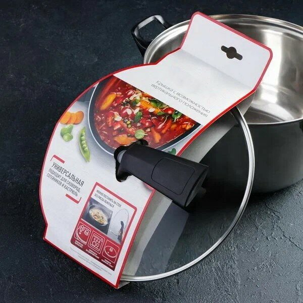Стеклянная крышка Tefal Maestro 04198726 для посуды диаметром 26 см - простая и удобная крышка, которая поможет уверенно готовить любимые блюда каждый день и подходит для сковород, сотейников и кастрюль. Следите за процессом приготовления, не нарушая его, благодаря удобной крышке из высококачественного закаленного стекла. Данная модель оснащена паровыпуском, который создаст выход накопившегося пара, сохраняя необходимое давление под крышкой для равномерного приготовления ваших блюд. Конструктивные особенности высококачественной рукоятки из бакелита обеспечивают пользователю удобный хват, когда крышку нужно снять, чтобы перемешать ингридиенты, также она устойчива к нагреву и защищает ладони от риска получения термического ожога. Компания Тефаль постоянно совершенствует свои технологии, чтобы гарантировать превосходные результаты приготовления блюд. Стеклянную крышку можно мыть от жира как вручную, так и в посудомоечной машине. Порадуйте себя и своих близких полной коллекцией из крышек Maestro, они подойдут на разные сковородки и кастрюли подходящего диаметра (20 см, 22 см, 24 см, 26 см, 28 см). Готовьте любимые блюда уверено и в полном комфорте со стеклянными крышками Maestro от Tefal!