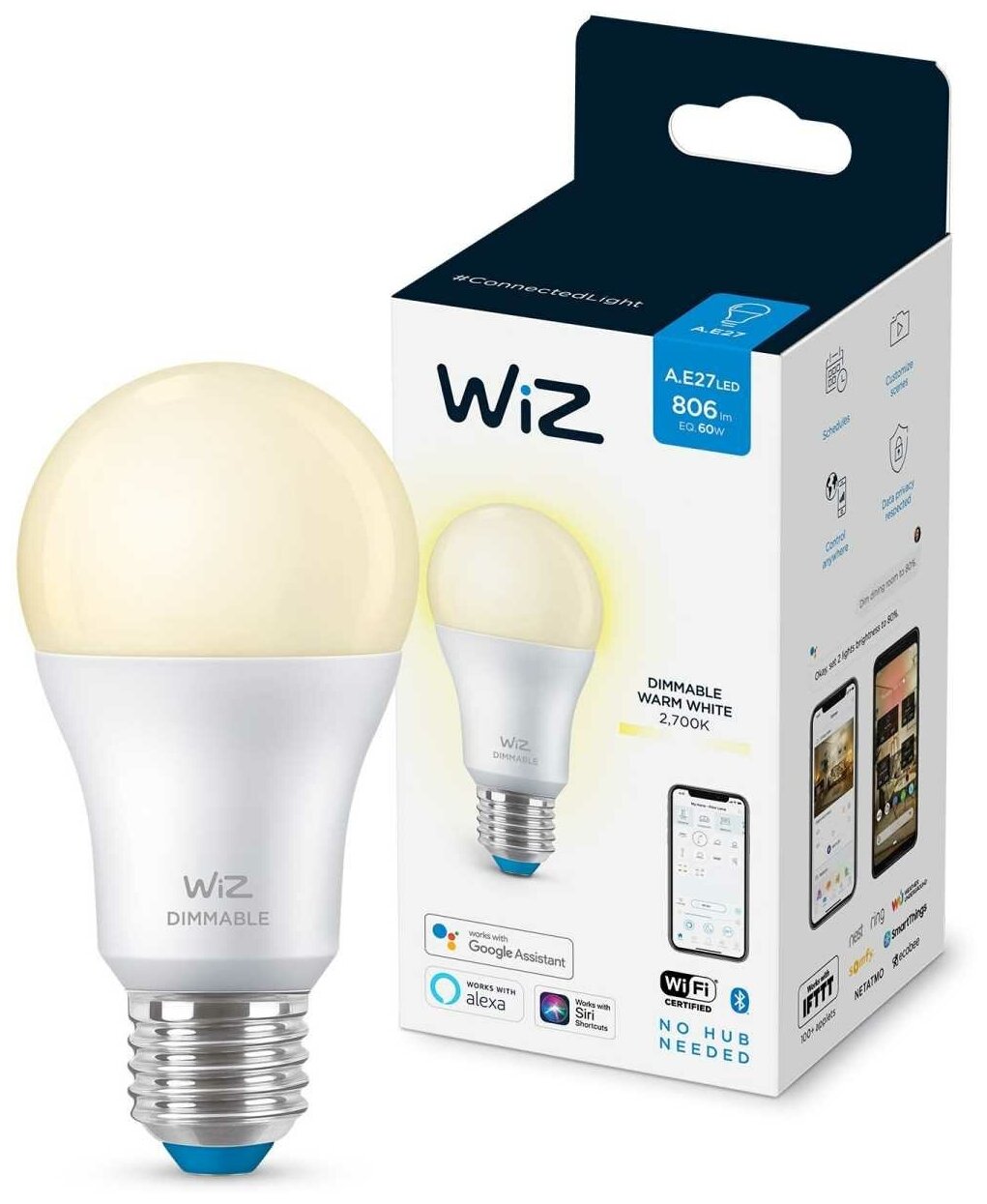 Добавьте теплого белого света с помощью диммируемой умной лампы Wiz в ваши светильники с патронами Е27. Используйте приложение WiZ или голосовые команды для удобного управления освещением.