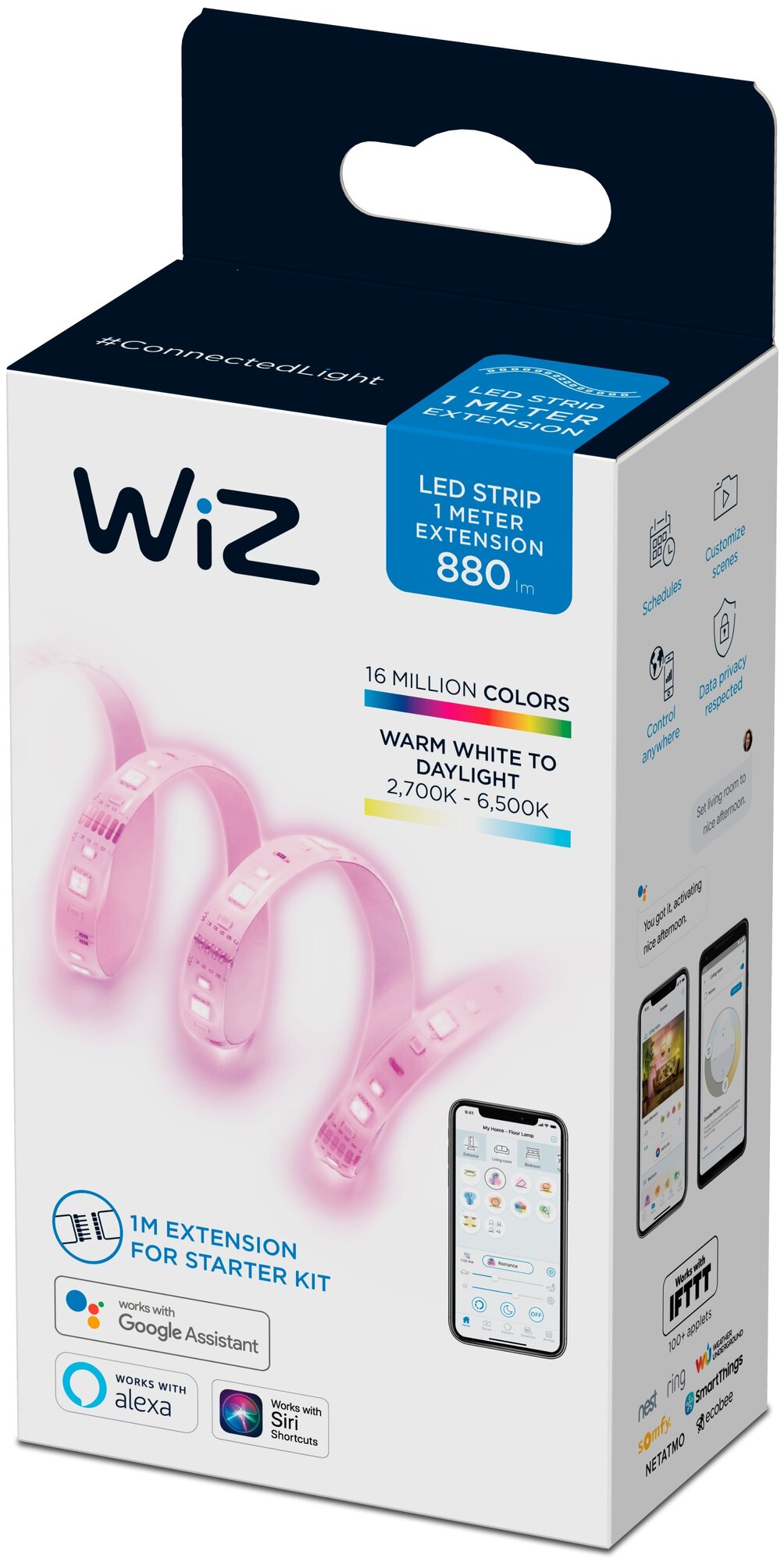 Увеличьте длину светодиодной ленты WiZ до 10 метров с помощью гибкого полноцветного удлинителя длиной 1 метр, который позволит привнести еще больше красок в ваш дом.