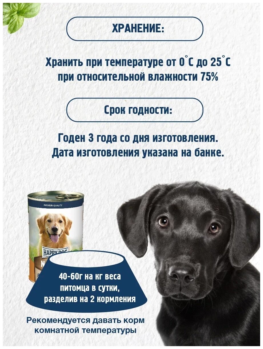 Консервированный корм Happy Dog , изготовленный из ингредиентов высочайшего качества по технологии Happy Dog. Подходит для кормления собак всех пород. Не содержит сои, искусственных красителей и консервантов.