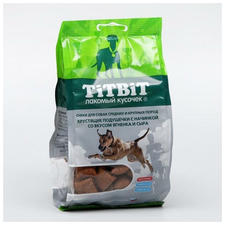 Лакомство для собак Titbit Хрустящие подушечки с начинкой со вкусом ягненка и сыра для крупных и средних пород 0095 кг