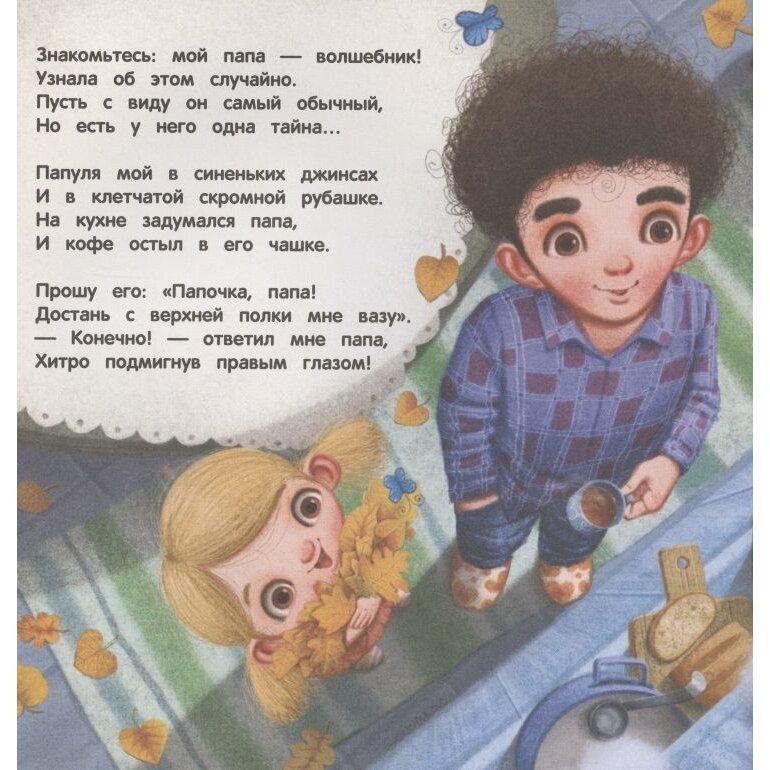 Эта книга посвящается всем папам на свете. Самым сильным, самым смелым, самым умным и самым добрым. С папой мир становится волшебным. Этот чудесный мир ты увидишь глазами замечательного художника Олега Гончарова. Сколько в нем радости, веселья, удивительных превращений и невероятной красоты! А какое чудо ты можешь сделать для папы?
