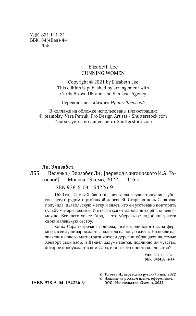 Книга: Ведуньи (Элизабет Ли); Эксмо, Inspiria, Редакция 1, 2021