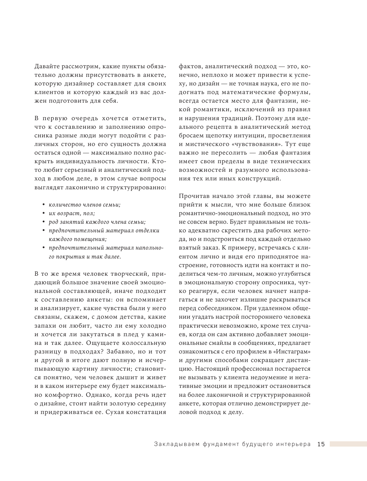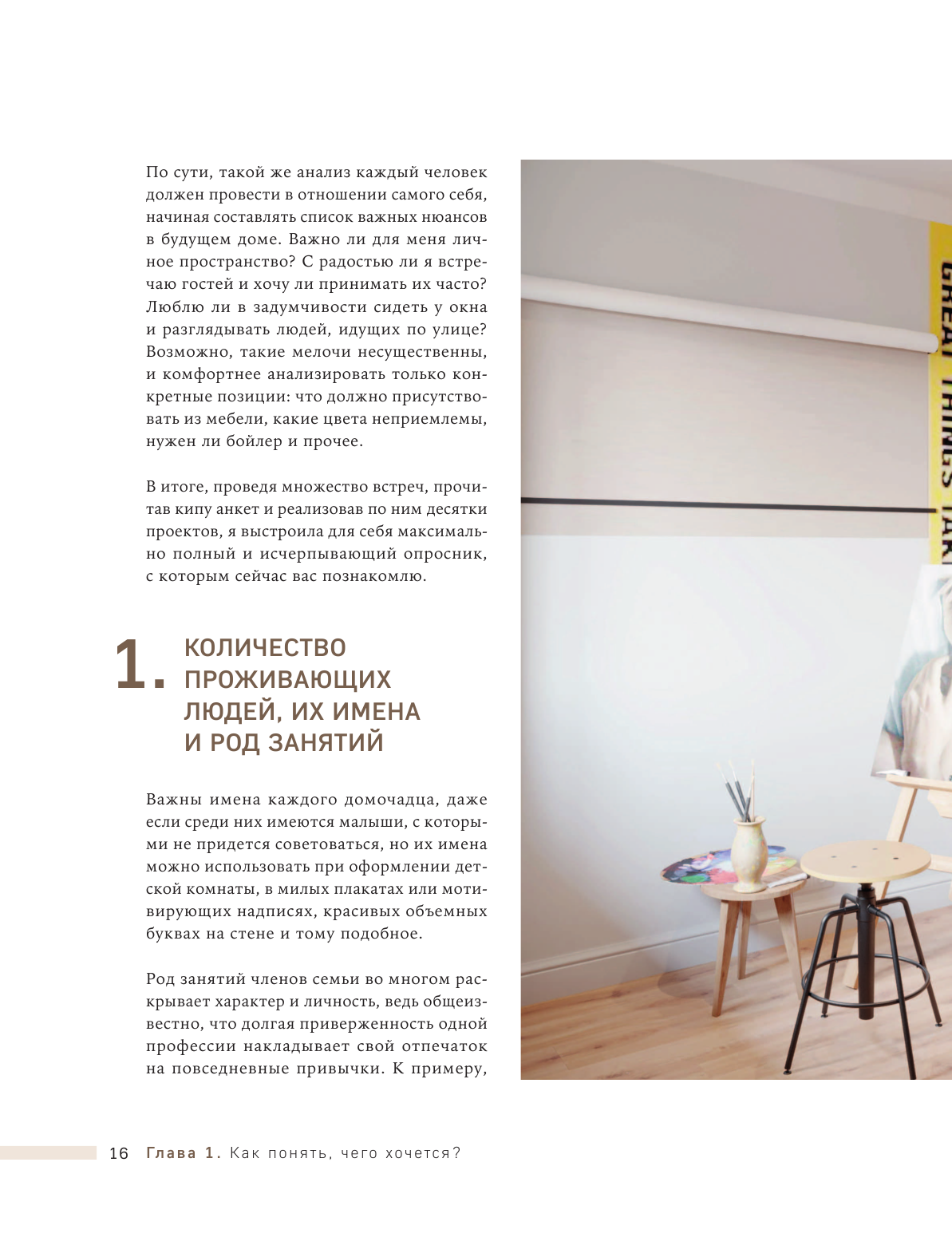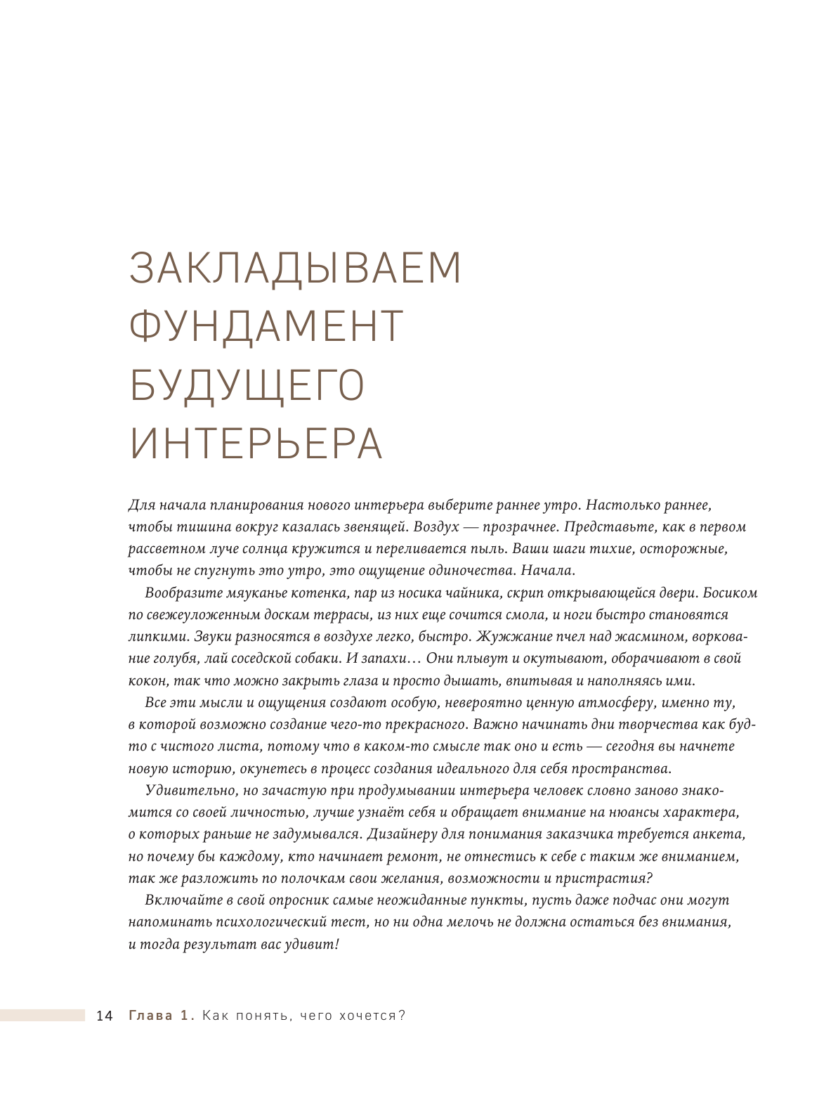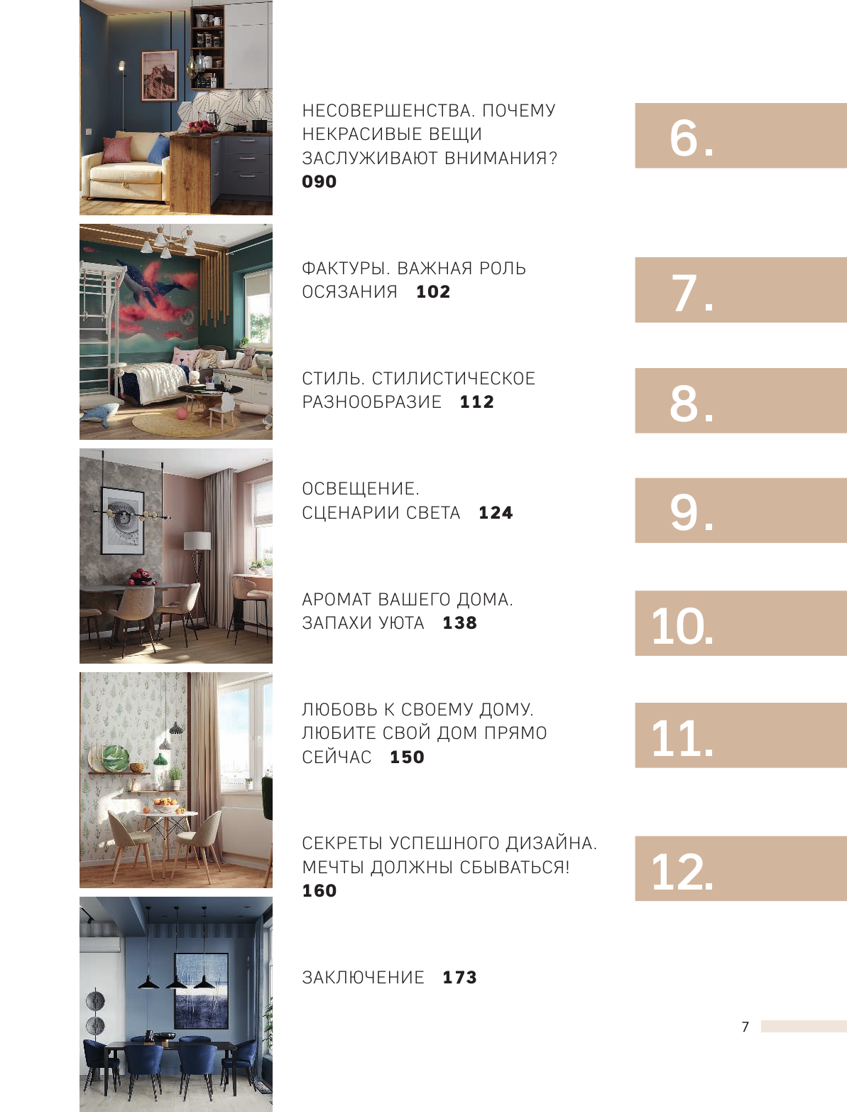 У меня уже небольшая коллекция книг по дизайну, и эту купила в первую очередь ради вдохновения - всегда ищу красивые иллюстрации и новые идеи для обустройства пространств. Книга не разочаровала! Интерьеры не совсем однотипные, как во многих подобных книгах, так что глазу есть за что зацепиться. Плюс, в тексте все тоже по делу. Отдельно замечу, что это вполне себе полноценный текст, тут есть и пошаговые рекомендации, и объяснения логики сочетания тех или иных предметов, которые представлены на фото. Поэтому, думаю, что книга подойдет и новичкам, кто только раздумывает над тем, как обустроить квартиру, и нуждается в поддержке и советах - тут все это есть.