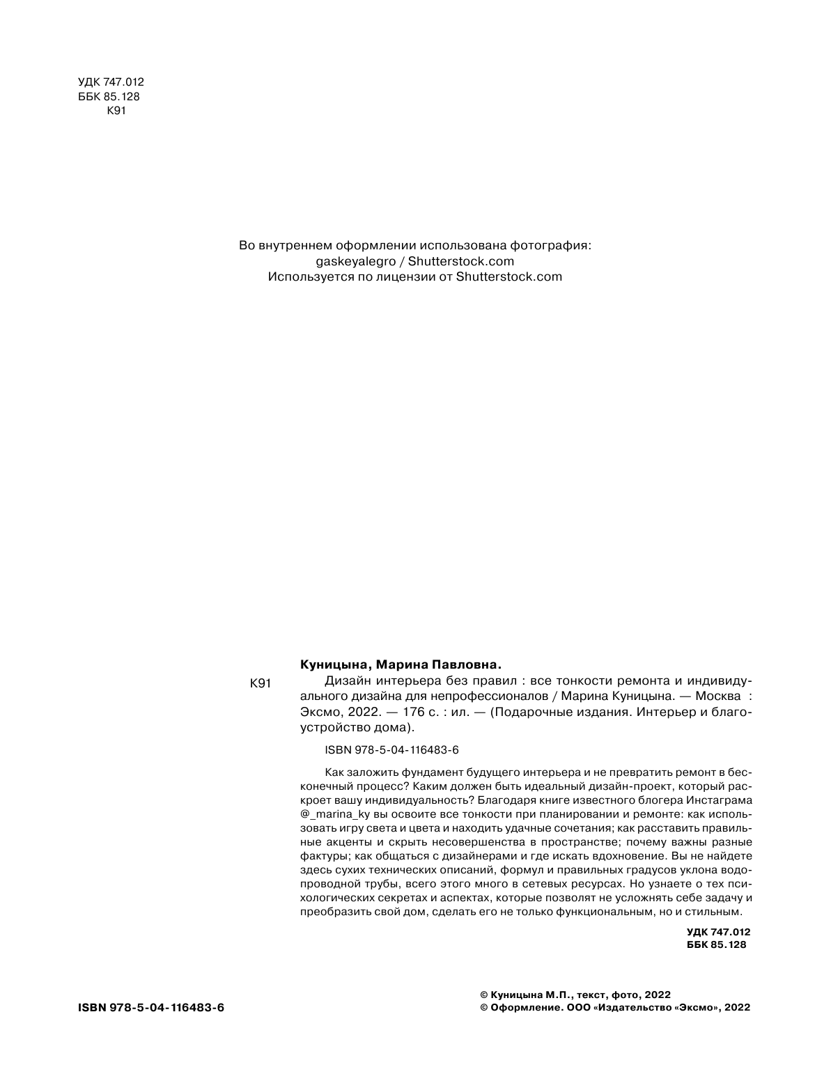 Сервис сравнения цен СкидкаГИД предлагает сравнить цены на товар «Книга: Дизайн интерьера без правил. Все тонкости ремонта и индивидуального дизайна для непрофессионалов (Куницына М.); ООО "Издательство "Эксмо", 2022»