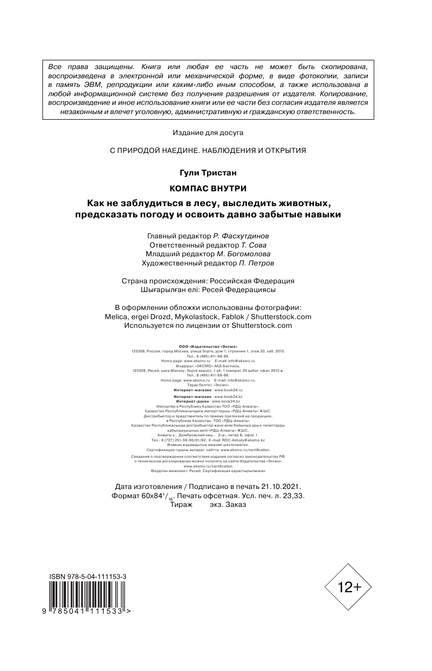 Компас внутри. Как не заблудиться в лесу выследить животных предсказать погоду и освоить давно забытые навыки (Гули Тристан); ООО "Издательство "Эксмо", 2021