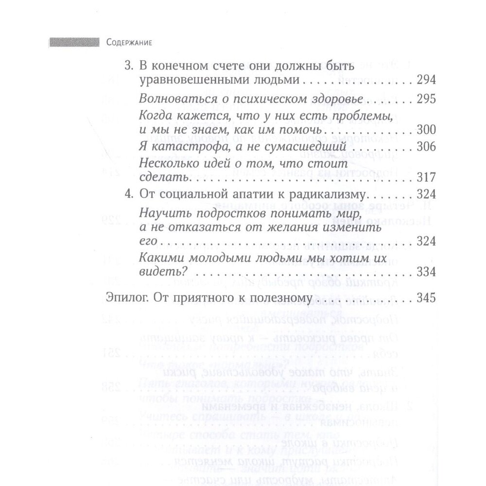В книге о восхитительно невыносимых подростках автор подробно разбирает четыре практических вопроса: как управлять опасными ситуациями, как поддержать позитивное отношение к школе, как отличить норму от ненормы в психическом здоровье подростка и как сориентировать подростка в общественной жизни.