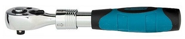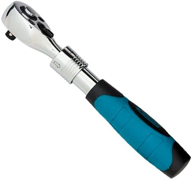 Для удобства работы ключ-трещотка оснащен запатентованным механизмом ступенчатой фиксации телескопической рукоятки. Изготовлен из хромованадиевой стали, трещотка – 72 зуба, реверс.