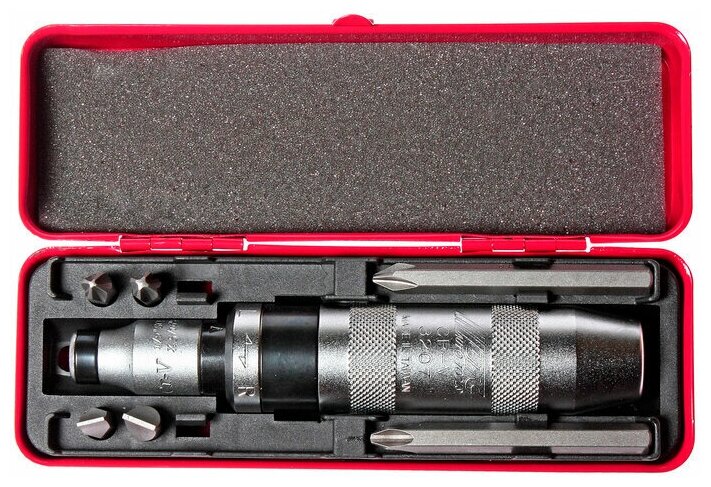 Ударная отвертка с битами JTC-3207поставляется в переносном железном кейсе, который увеличивает срок службы инструмента, так как позволяет его бережно хранить.Преимущества В комплект входят 6 бит из стали марки S2 с прямым и крестообразным шлицем Ударная отвертка 1/2" выполнена из прочной стали Отвертка с битами в комплекте обеспечивает удобство в работе