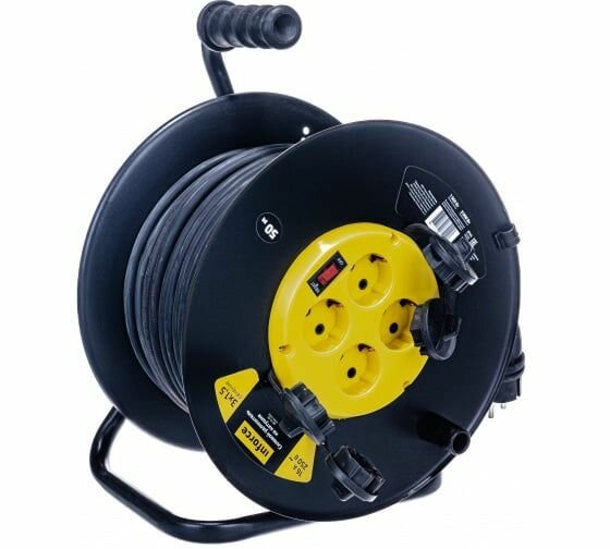 Силовой удлинитель Inforce на катушке, 4гн. с/з КГт 3х1,5 16A 50м IP 44 09-15-02 (черный)