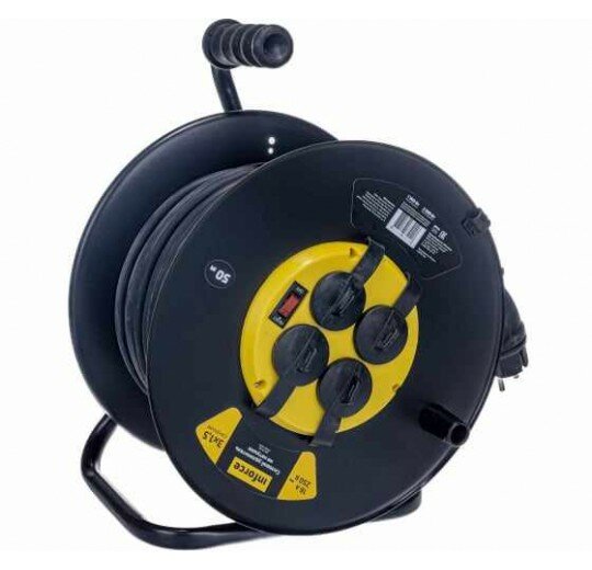Силовой удлинитель на катушке Inforce 4 гнезда, с/з КГт 3х1,5 16A 50м IP44 09-15-02 предназначен для использования в тяжелых условиях. Удлинитель можно применять на стройках, на производстве, а так же на открытом воздухе. Прочный металлический корпус покрыт специальной порошковой краской. Провод КГ, используемый для удлинителя данного вида, устойчив к механическим повреждениям, так и к повреждениям в результате воздействия низкой температуры воздуха. Удлинители снабжены защитными крышками на розетках, они позволяют защитить контактную группу по стандарту IP44. Безопасность удлинителя обеспечивается за счет наличия термовыключателя, не позволяющего использовать изделие с превышением заявленных характеристик.