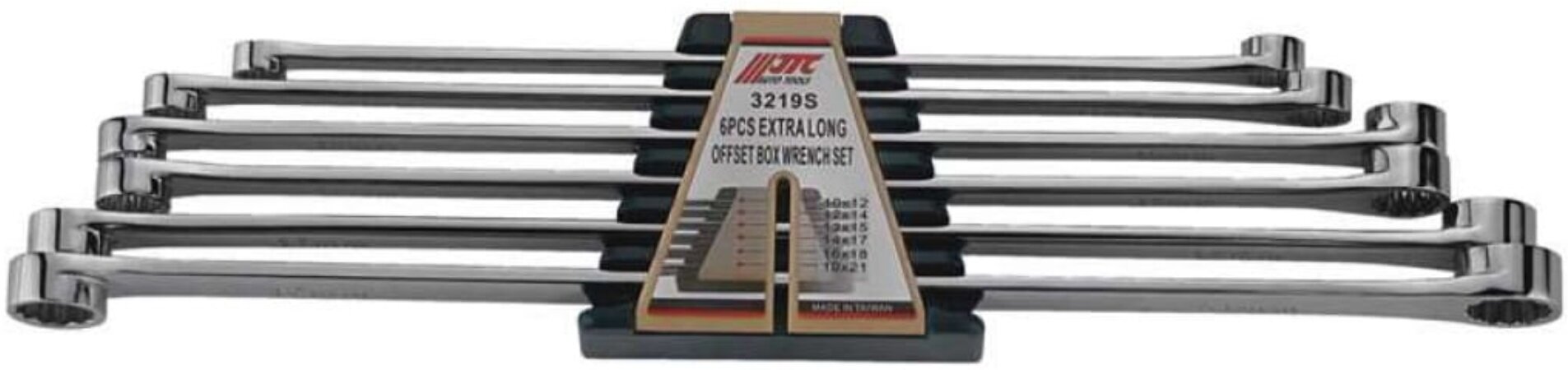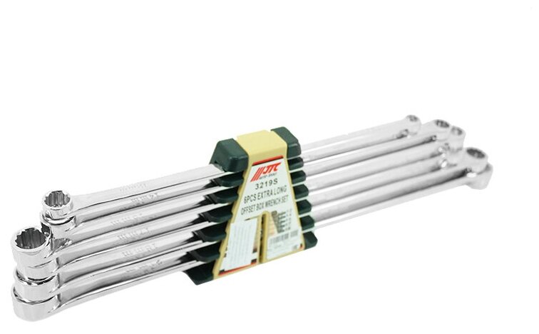 Набор ключей накидных "JTC" предназначен для работы с крепежными двенадцатигранными элементами.Инструмент изготовлен из закаленной хром-ванадиевой стали, за счет чего обладает повышенной прочностью и износостойкостью.Благодаря специальной удлиненной конструкции инструменты удобны для применения в условиях ограниченного пространства, например, при работе с шкивами, радиаторами охлаждения и т. п.Предназначены для работы с крепёжными двенадцатигранными элементами.Инструмент изготовлен из закаленной хром-молибденовой стали с хромированным покрытием, за счет чего обладает повышенной прочностью и износостойкостью.Благодаря специальной удлиненной конструкции инструменты удобны для применения в условиях ограниченного пространства, например, при работе с шкивами, радиаторами охлаждения и т. п.