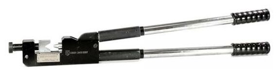 Пресс механический КВТ ПМУ-240 [47542] применяется для клиновидной опрессовки неизолированных наконечников и гильз.Диапазон сечений: медные наконечники 10 - 240 мм² алюминиевые наконечники 10 - 300 мм²Инструмент имеет V-образную матрицу. Установочный винт в верхней части инструмента обеспечивает быструю регулировку под необходимый размер.Особенности: Две калибровочные шкалы: для медных и алюминиевых наконечников по ГОСТ На рукоятках имеются накладки для удержания инструмента и удобства работы Пресс выполнен из прочной стали Телескопические рукоятки с фиксацией длины В комплекте тканевая водозащитная сумка Сопутствующие товары Сумки для инструмента КВТ Стрипперы КВТ Защитные очки монтажника КВТ Перчатки монтажника КВТ