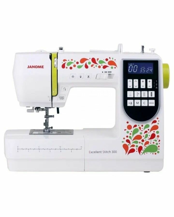 Многофункциональная компьютеризированная швейная машина Janome ES 300 в оригинальном дизайне с рисунком – ещё одна яркая представительная широко востребованной и популярной техники японского производителя Джаноме. Данная модель оборудована горизонтальным ротационным челноком, обеспечивающим бесшумную работу и усовершенствованным двигателем лучшего образца, позволяющим свободно прошивать материалы лёгкой и средней плотности. Швейная машина Janome Exellent Stitch 300 отличается удобным компьютерным управлением. Модель предлагает сразу 300 швейных операций на выбор и такой огромный ассортимент позволит вам заниматься любыми видами шитья, включая лоскутное, квилтинг, а также другие возможные варианты профессионального шитья. Janome ES300 оснащена практичным горизонтальным челноком, что обеспечивает бесшумную работу и плавный ход, при выполнении любой операции. 7-сегментная рейка обеспечивает эффективное передвижение ткани в процессе работы, позволяя упростить процедуру шитья. Машина способна выполнять 12 пуговичных петель в автоматическом режиме. Мощность модели – 45 Вт. Этого вполне достаточно для выполнения различных швейных операций и обработки всевозможных типов ткани – от легкого шелка до плотного джинса. Кроме того, машина имеет дополнительную регулировку баланса петли, в зависимости от выбранного рабочего процесса.