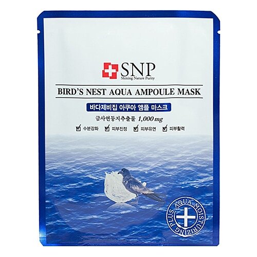 Увлажняющая успокаивающая тканевая маска SNP Bird's Nest Aqua Ampoule Mask с экстрактом гнезда ласточки 25мл (П064-890582)