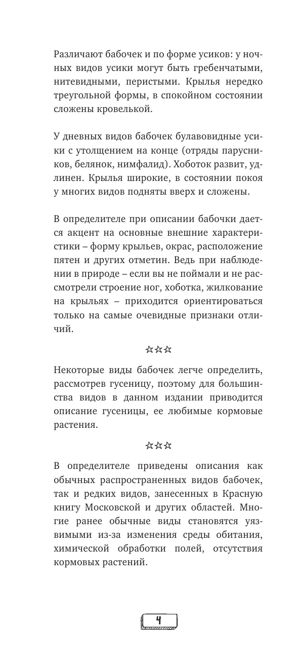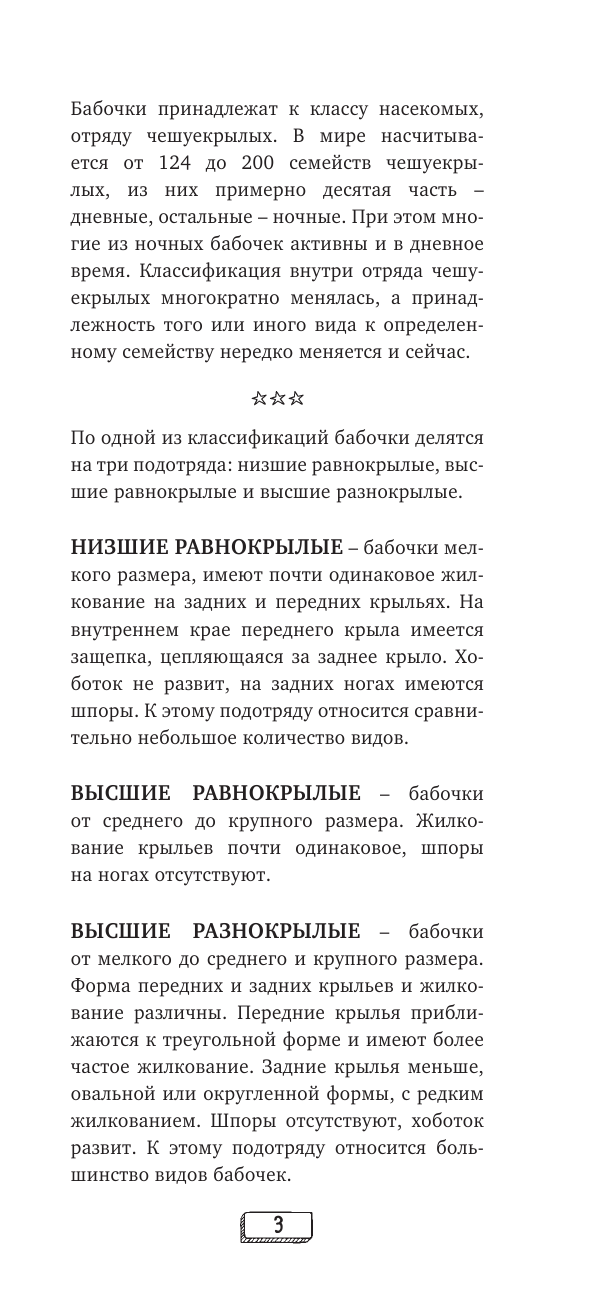 Хороший современный определитель 60-ти видов как дневных, так и ночных бабочек. Яркая глянцевая плотная обложка с изображением бабочек в натуральную величину и краткое описание видов на обычной бумаге. Небольшой формат удобно брать с собой в поход или на прогулку. В общем, для начинающих исследователей бабочек вполне подойдëт.