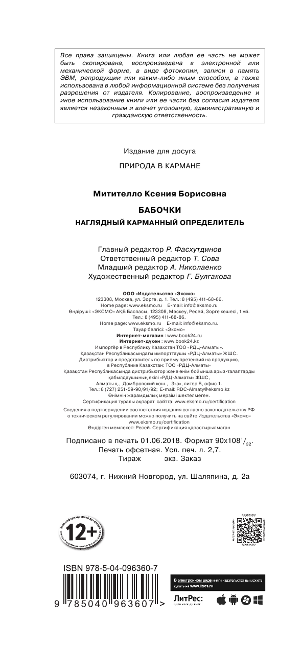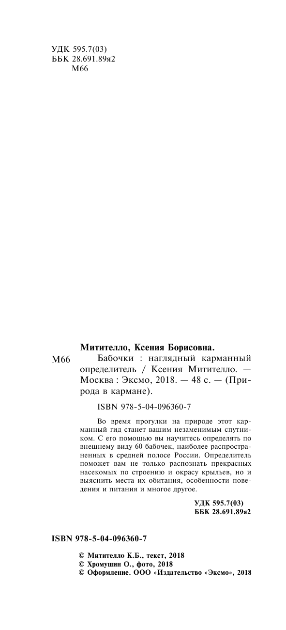 Бабочки. Наглядный карманный определитель (для ПР) (Митителло Ксения Борисовна); ООО "Издательство "Эксмо", 2018