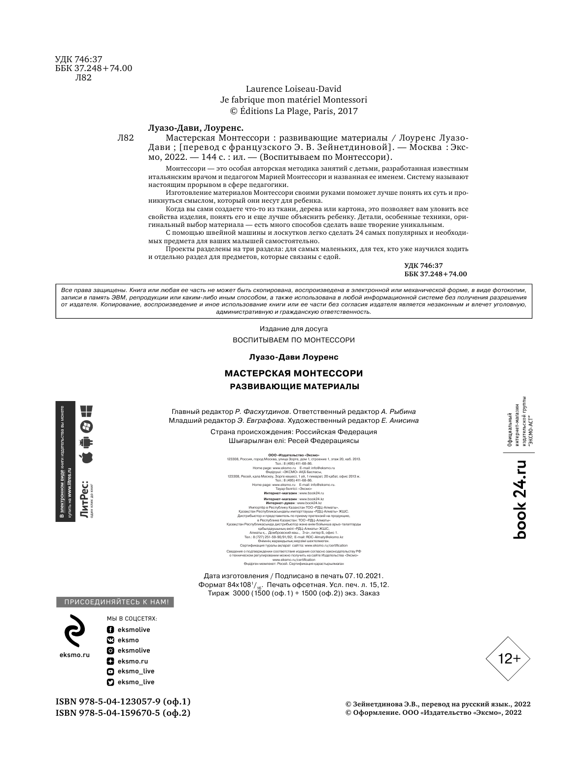 Мастерская МОНТЕССОРИ. Развивающие материалы своими руками (Луазо-Дави Лоуренс); ООО "Издательство "Эксмо", 2022