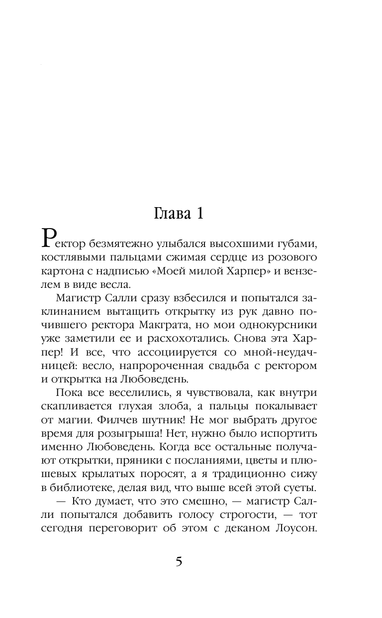 Тот случай, когда с первых строк книга нравится. Слог у автора хороший, это первое на что я обращаю внимание, начиная читать нового автора. Повествование ироничное, герои хороши, даже не знаю, кто больше понравился. Харпер - студентка, над которой потешается вся академия. Чтобы прекратить издевки и наказать обидчиков, в праздник Любоведень (очаровательное название, это аналог дня Святого Валентина) девушка решает "поднять" ректора. Что из этого вышло, нужно не рассказывать, а читать, хорошее настроение обеспечено.