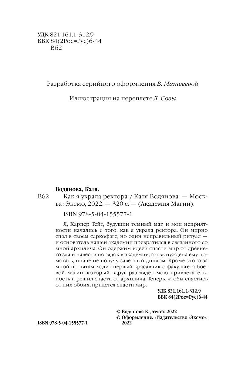 Книга: Как я украла ректора (Катя Водянова); Эксмо, Редакция 1, 2021