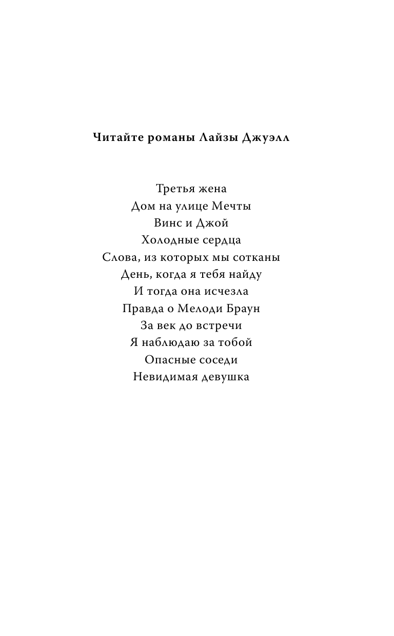 После этой книги даже на хороших знакомых нет-нет, но смотришь с подозрением. Лайзе Джуэлл отлично удалось вплести в сюжет тему социальной тревожности, что актуально для жителей современных городов.