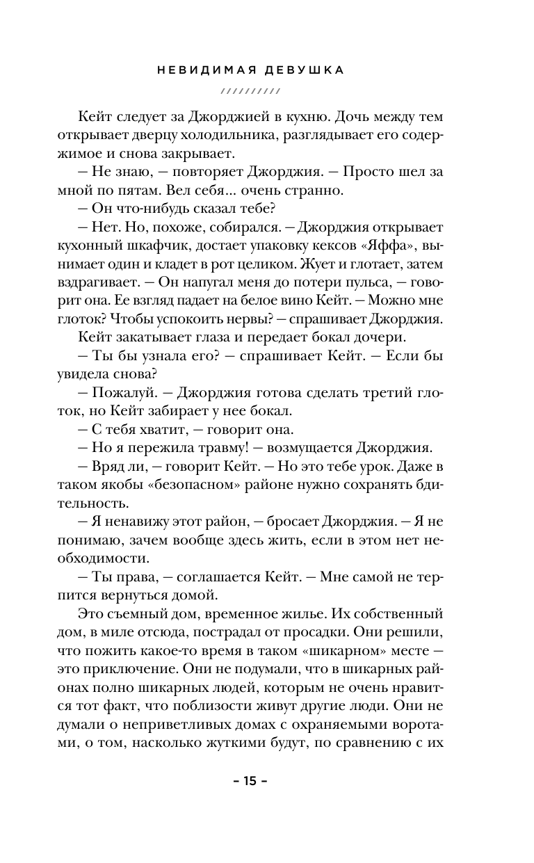 "Невидимая девушка" - это вольное продолжение темы, что уже затронута Лайзой Джулл в романе "Опасные соседи". Вышло очень реалистично, а оттого жутко. Советую!
