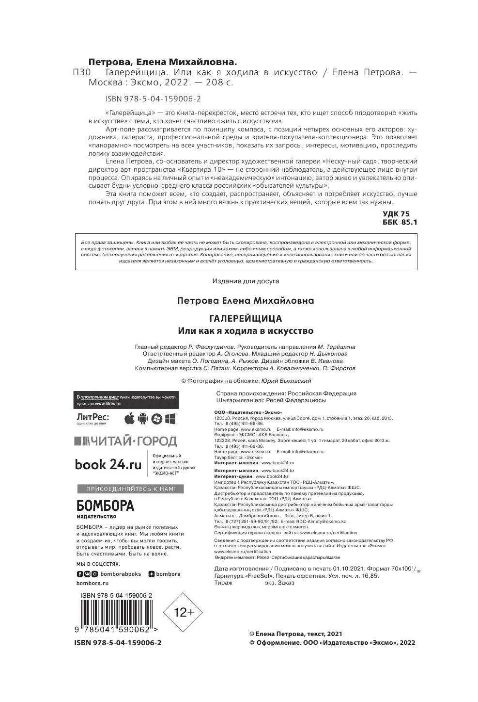 Галерейщица. Или как я ходила в искусство (Петрова Елена Михайловна); Бомбора, 2022