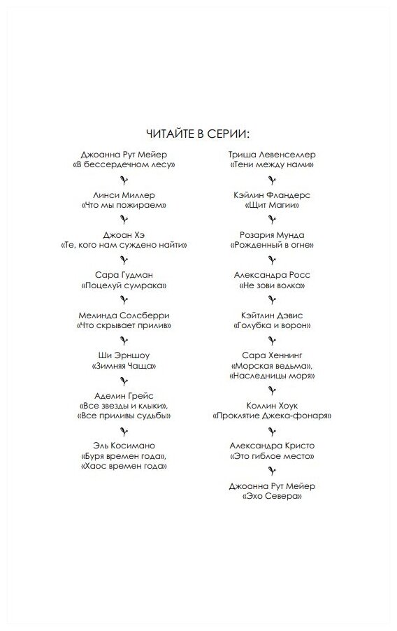 Мрачный саспенс держит читателя в напряжении от самого начала и до конца, вызывая все большие вопросы: кто виноват? Где правда, а где вымысел? Чего еще ждать от сверхъестественной силы? Повороты сюжета, глубина характеров, запутанная история любви, колдовская магия — мурашки по коже!