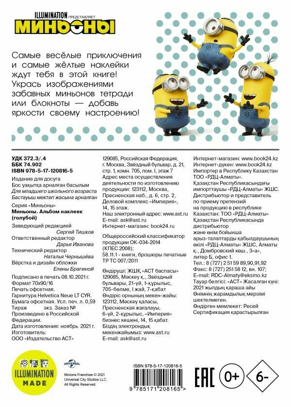 Миньоны. Альбом наклеек (голубой) (Иванова Д. (ред.)); ИЗДАТЕЛЬСТВО "АСТ", 2 021