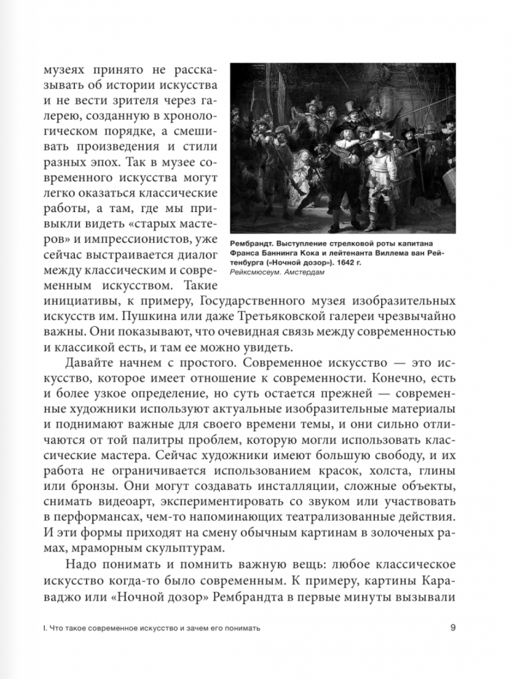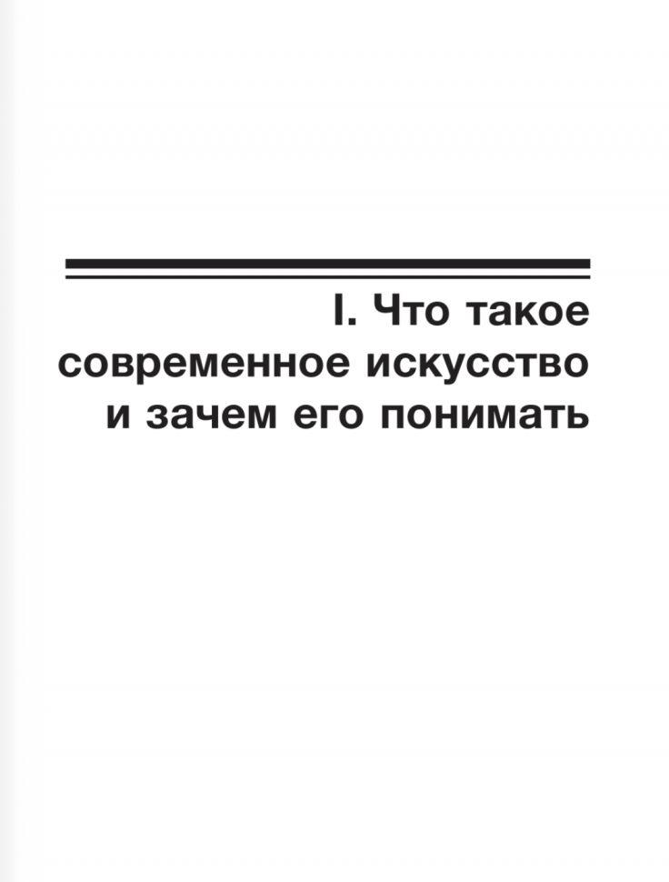 Почему люди боятся современного искусства? Да и с чего мы вдруг взяли, что оно может вызывать страх? При этом самое большое отторжение вызывает абстрактная живопись, минимализм, реди-мейды (подробнее о том, что это и зачем нужно, мы расскажем позже) и даже хорошо всем известный «Черный квадрат» Малевича. Последний многие вообще воспринимают как шутку, а не шедевр авангарда. Всему виной страх, который возникает от незнания, неуверенности и непонимания. Когда мы чего-то не знаем или не понимаем, то часто просто боимся, к примеру, находясь в музее, спросить у смотрителя: «А что значит эта картина или инсталляция?» или, даже проще, «Что же хотел сказать художник?» Другая проблема состоит в том, что работники музеев часто не могут ответить на этот вопрос, и сами не любят то искусство, рядом с которым по долгу службы им приходится находиться. Ответ на вопрос не получен и настроение испорчено. Отсюда возникает простое человеческое желание сразу бросить все, забраться в уютный кокон работ «старых мастеров», такого понятного и родного реалистического искусства, не выяснять ничего больше, а жить спокойно дальше, продолжая ругать все современное и непонятное. Эта книга как раз призвана побороть этот страх и неприятие, рассказать, что современное искусство может быть понятным, интересным, вызывать яркие эмоции, помочь расширить кругозор. Оно в действительности дает возможность взглянуть на многие вещи под другим углом.