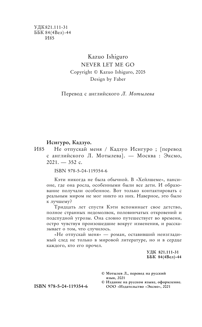 Книга: Не отпускай меня (Кадзуо Исигуро); Эксмо, Редакция 1, 2024