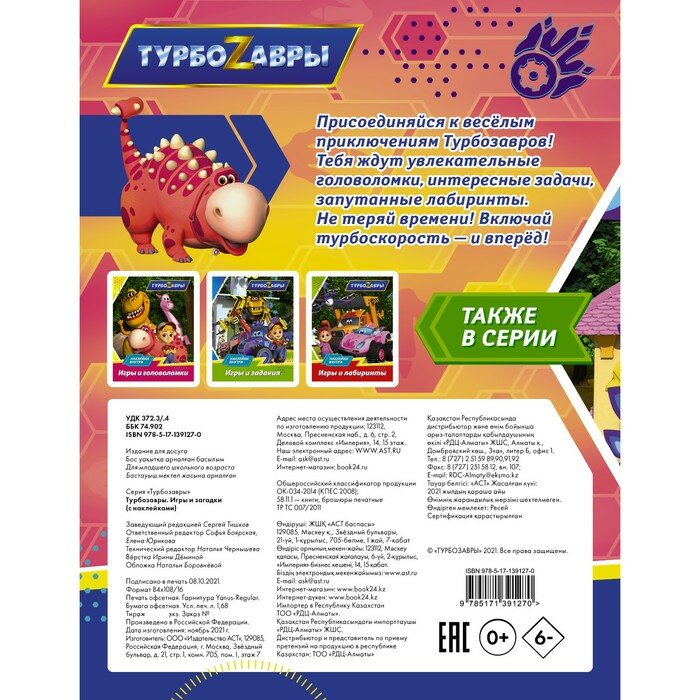 Сервис сравнения цен СкидкаГИД предлагает сравнить цены на товар «Книга: Турбозавры. Игры и загадки (с наклейками) (Боярская С., Юрикова Е. (ред.)); ИЗДАТЕЛЬСТВО "АСТ", 2021»