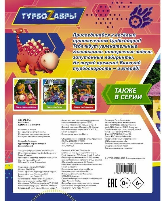 Турбозавры. Игры и загадки (с наклейками) (Боярская С., Юрикова Е. (ред.)); ИЗДАТЕЛЬСТВО "АСТ", 2021
