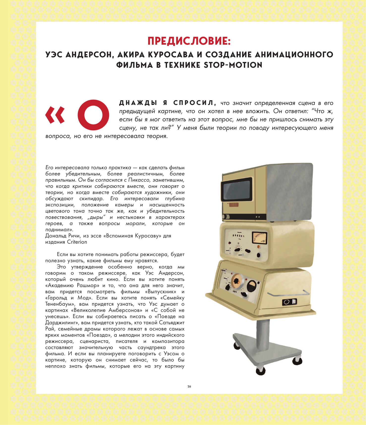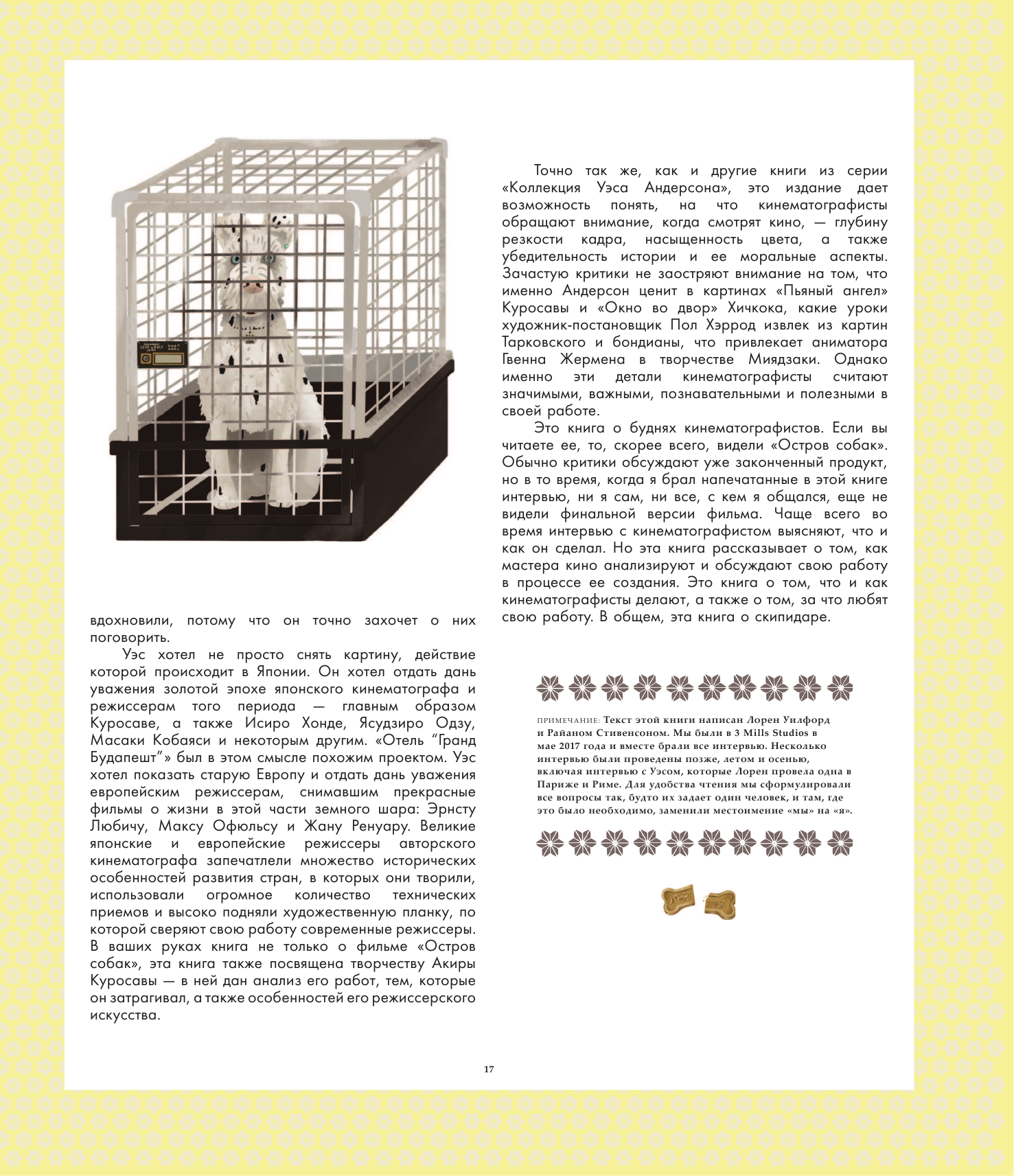 Настоящий подарок для ценителей творчества знаменитого режиссера Уэса Андерсона. "Остров собак" - не самая типичная его работа, в ней много драматичного, грустного и даже жестокого, но как всегда визуально это выполнено на безупречном уровне. Об истории создания этого мультфильма и рассказывается в этой книге. Очень много иллюстраций, издано очень качественно и со вкусом. Но цена((