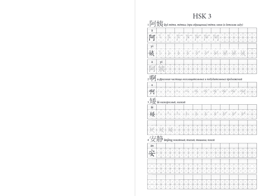 Что ж, тетрадь довольно-таки полезная для подготовки к hsk 3-4 уровня. Чем же она полезна? Для начала тем, что там уже напечатаны необходимые слова, которые ты затем прописываешь, плюс ко всему ты не только тренируешь память в написании иероглифа, но еще и запоминаешь тоны, т.к. тоны ты тоже прописываешь вместе со словом! Лексика отличная, я довольна. Рекомендую всем, кто готовится сдавать экзамен!