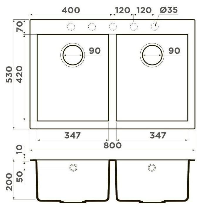 | Глубина чаши (мм) | 200 |