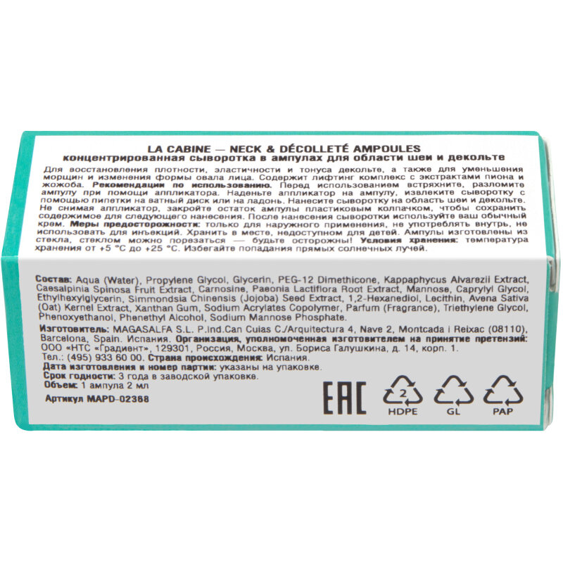 LA CABINE Концентрированная сыворотка в ампулах для области шеи и декольте 10*2 мл (LA CABINE ) (ЭХ99989417867)