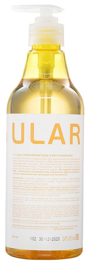 | Способ применения | на влажные волосы нанесите небольшое количество шампуня, мягко массируя до образования пены. Хорошо промойте волосы, при необходимости повторите процедуру. Для более выраженного эффекта использовать вместе с бальзамом для волос. |