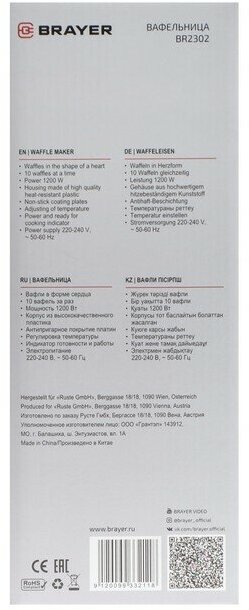 | Дополнительная информация | вафли в форме сердца, антипригарное покрытие, бортики для предотвращения вытекания теста |