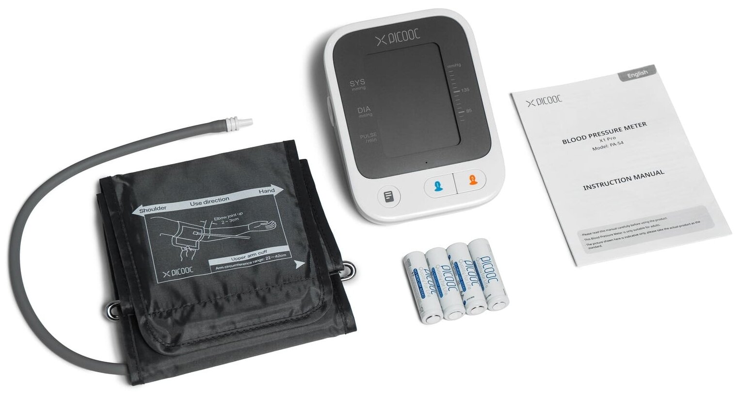 Picooc X1 Pro измеряет артериальное давление и пульс и автоматически ведет журнал измерений на смартфоне. Устройство подключается к домашней сети Wi-Fi и передает результаты в бесплатное приложение на русском языке. Прибор работает по принципу большинства электронных тонометров: показания снимаются при помощи универсальной манжеты с обхватом 22-42 см. Устройство позволяет сохранять историю измерений 2 пользователей и синхронизируется с их аккаунтами Picooc. Особенности: простая и быстрая настройка через приложение на русском языке; подключение к приложению по Wi-Fi и синхронизация с 2 аккаунтами Picooc; возможность использования без смартфона и сети Wi-Fi; до 99 записей в памяти прибора для каждого пользователя; оценка артериального давления по шкале ВОЗ; озвучивание результатов измерений; индикатор аритмии на экране прибора; работа от microUSB или от батареек & #40;4 х AA, в комплекте& #41;.