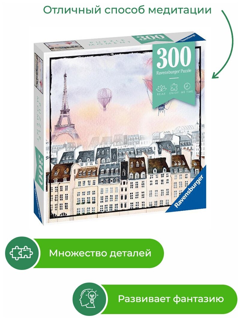 Пазл Ravensburger «Воздушные шары в Париже» — это 300 элементов и много увлекательно проведённого времени с семьёй, друзьями или с собой любимым!