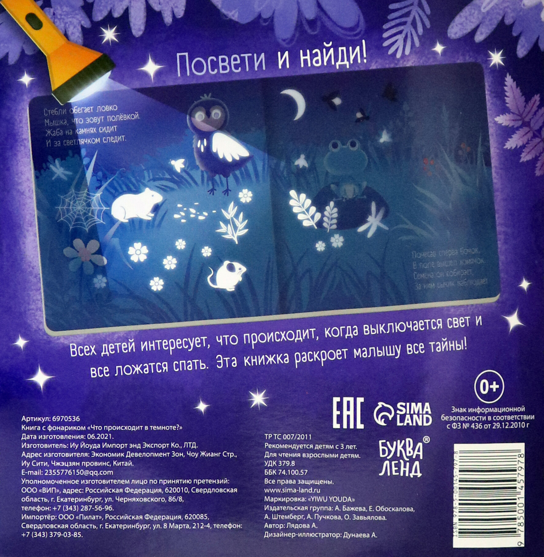 Книга с фонариком Что происходит в темноте? (Дунаева А. (худ.)); БУКВА-ЛЕНД, 2021