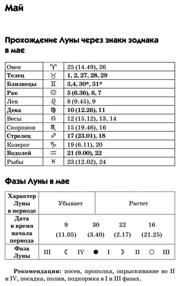| Раздел | Лунные календари |