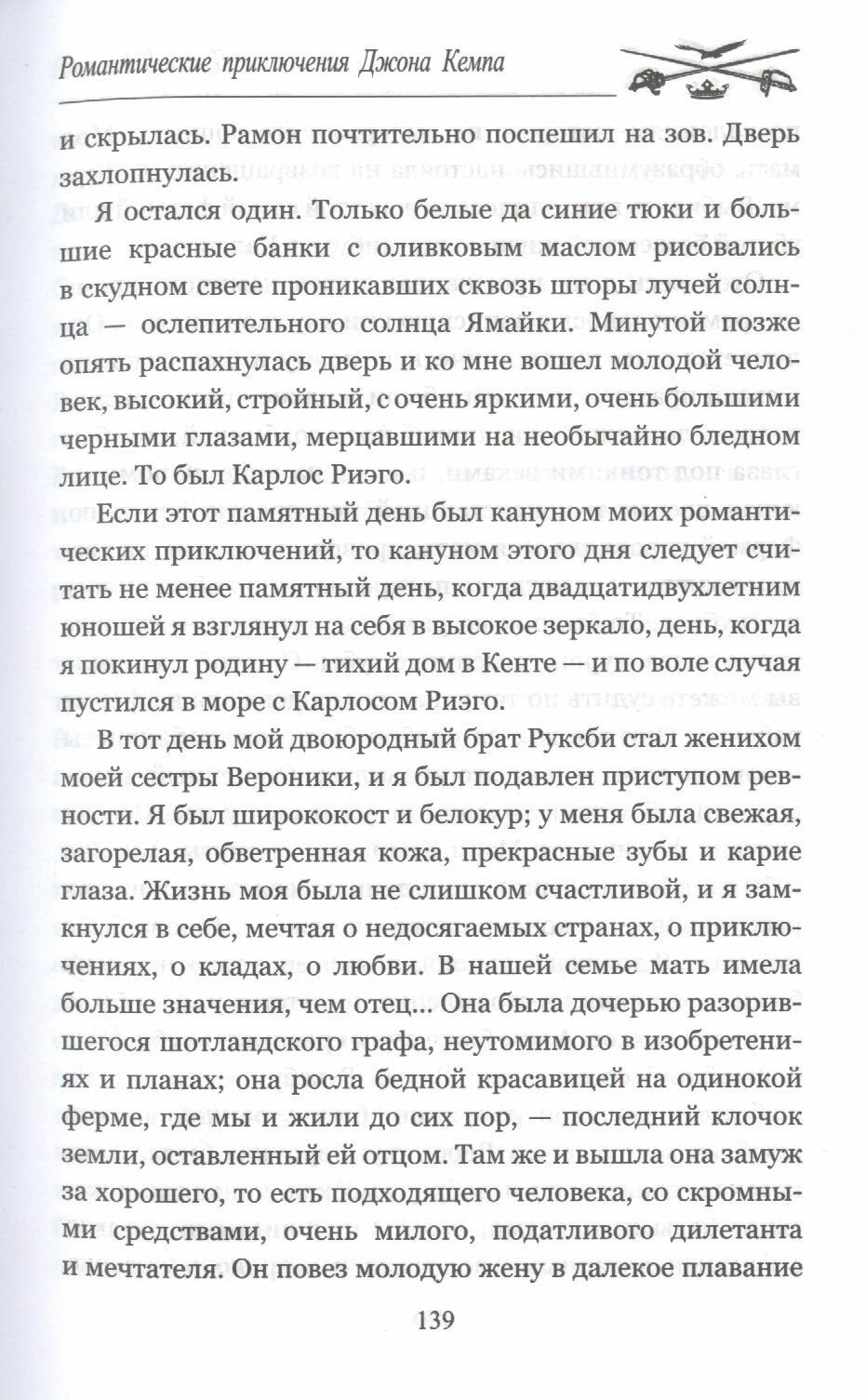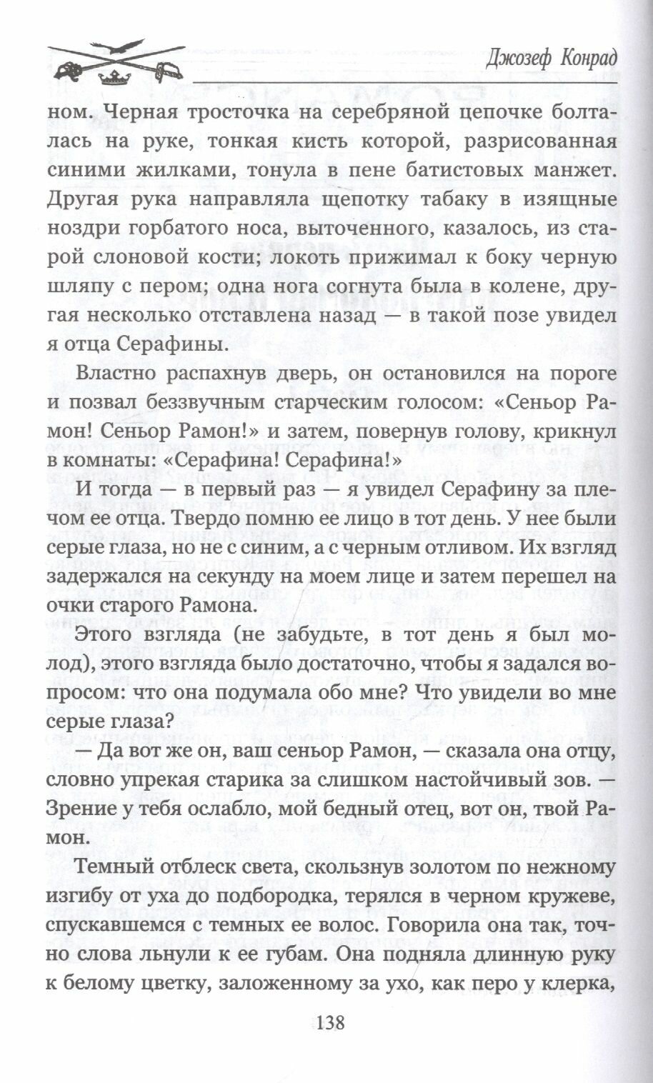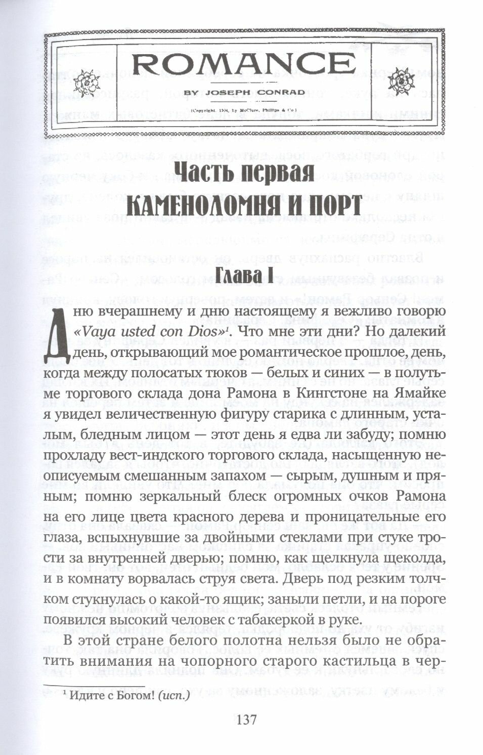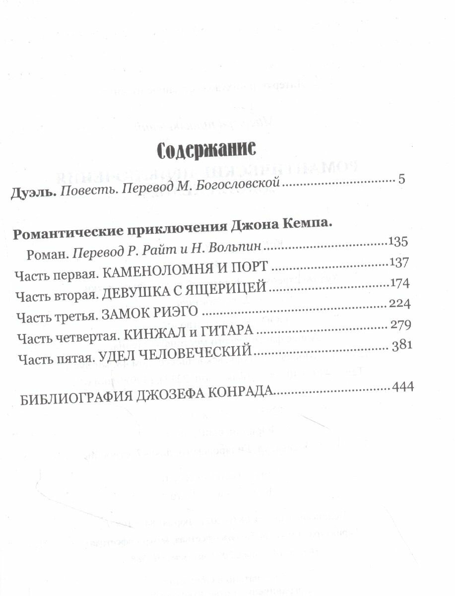 Джозеф Конрад – английский писатель 19-20 века с самым знаменитым произведением «Лорд Джим». Тем не менее, роман «Романтические приключения Джона Кемпа» и повесть «Дуэль» также достойны внимания публики. Обложка выполнена в твердом и почти полностью матовом переплете за исключением глянцевой картинки на внешней стороне. Шрифт четкий и удобный для чтения. Страницы белоснежные с несколькими черно-белыми иллюстрациями.