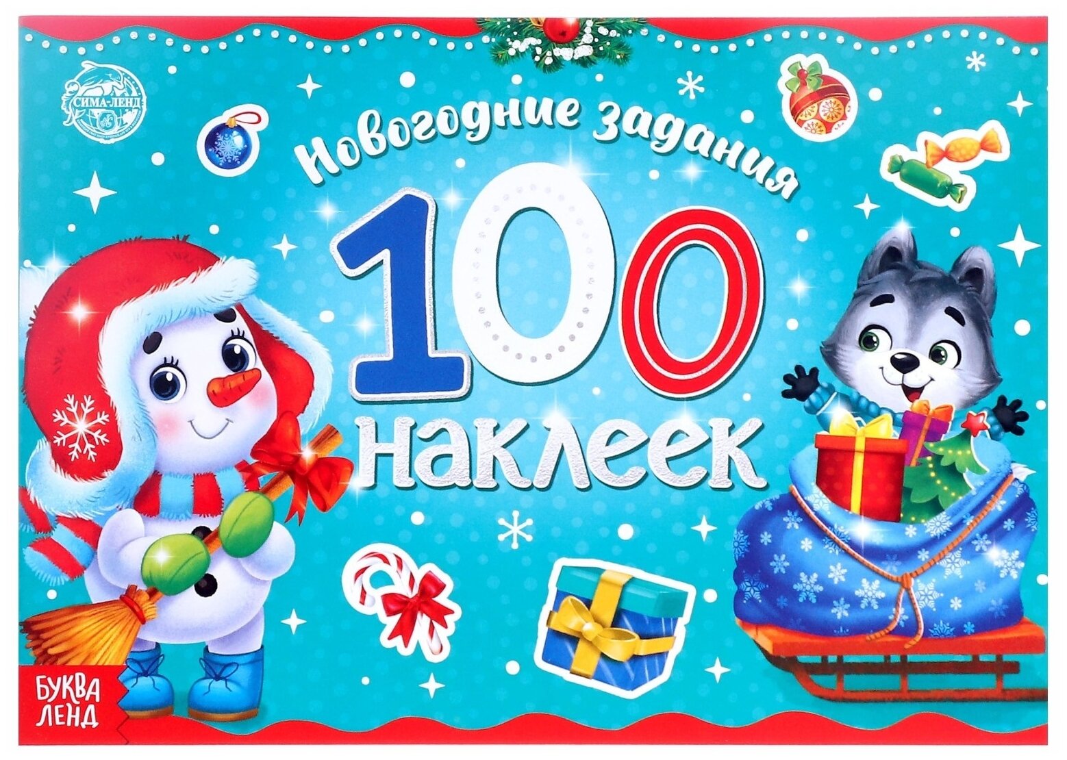 В книжке 100 наклеек на новогоднюю тематику и страницы с заданиями.