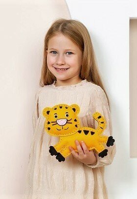 Набор для шитья Игрушка Тигр. Благодаря перфорированным отверстиям, подробной инструкции и пластиковой безопасной иголке, ребенок сможет самостоятельно сшить мягкую игрушку. Состав: детали из фетра, наполнитель, пластмассовая игла, нитки, инструкция. Размер изделия: 21,5*19 см. Возраст 5+ .